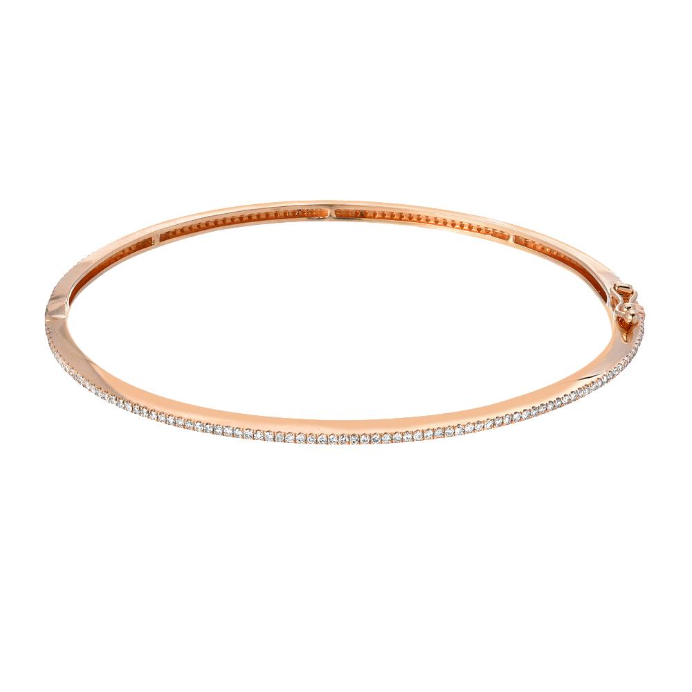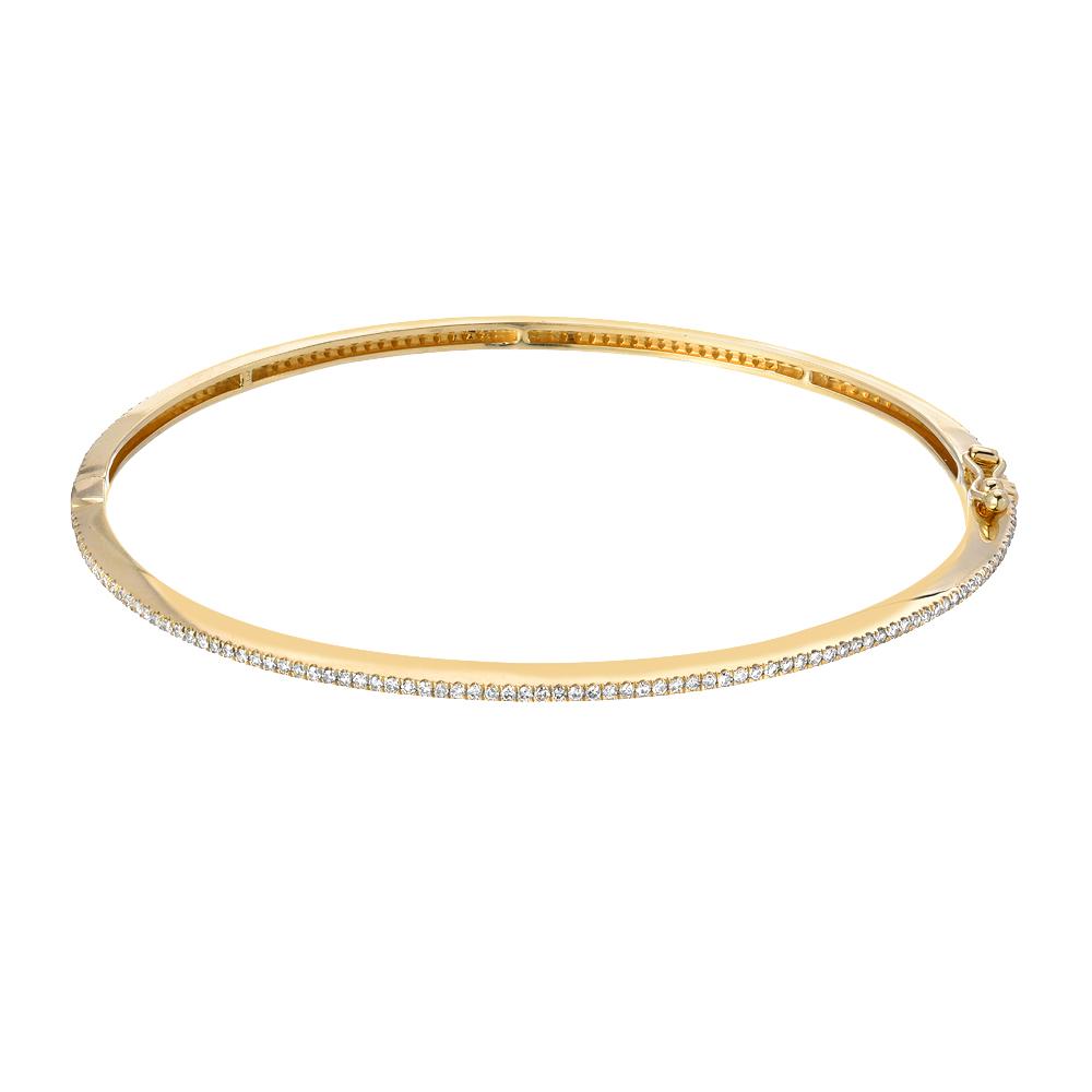 This striking bangle features micropave set diamonds all the way around. Looks beautiful when stacked with fine delicate pieces.