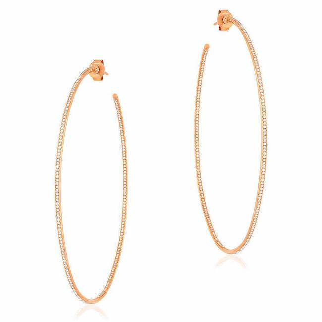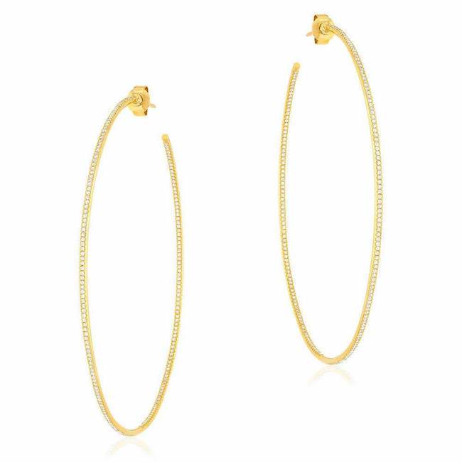 65mm 14k gold in and out hoop earrings with 412 diamonds.