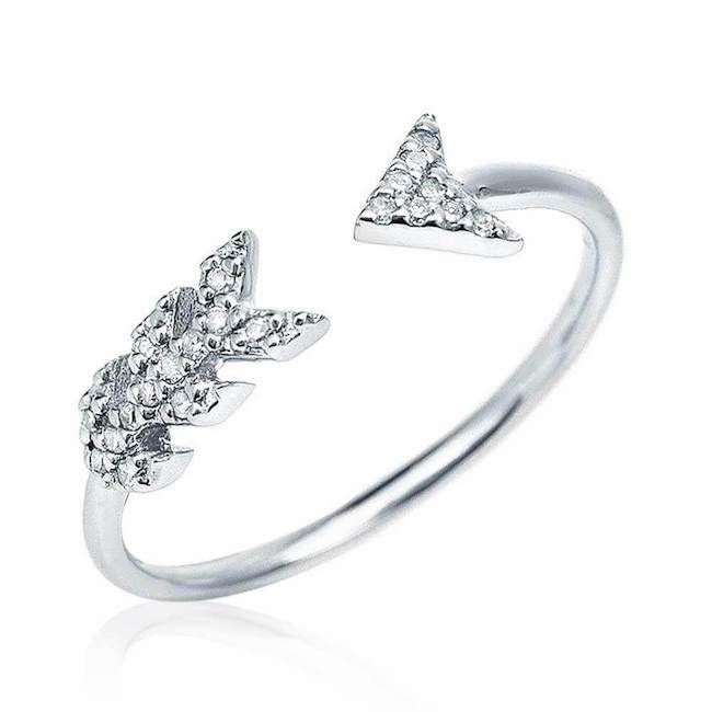 The arrow ring is set in 14k gold, and features 21 hand set diamonds.