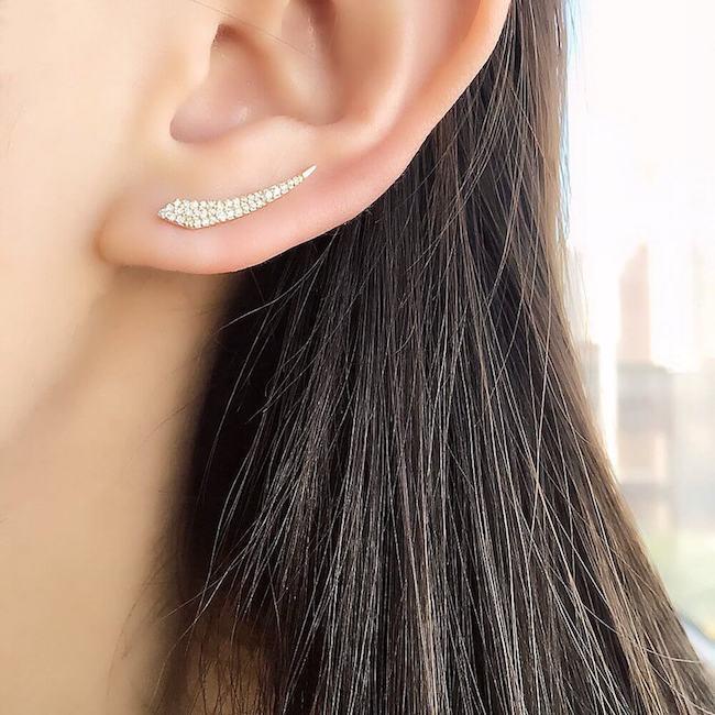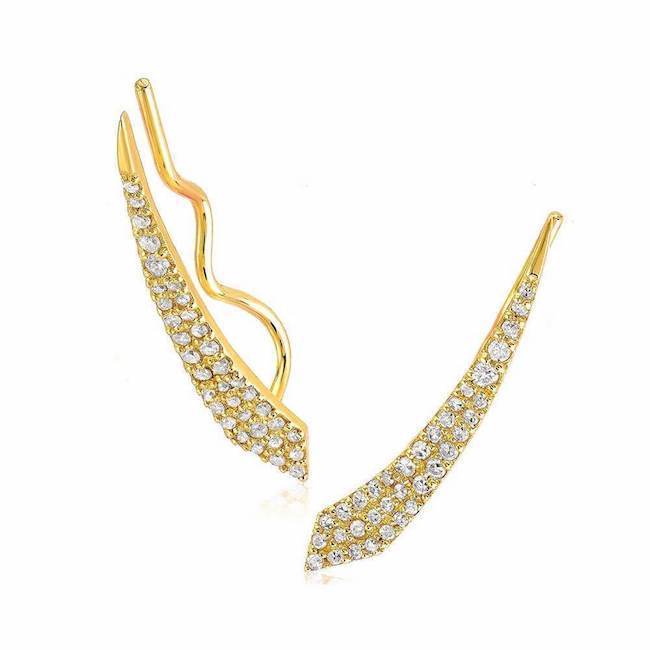 These 14K gold ear climbers feature 70 pave set diamonds in a cool comet tail.