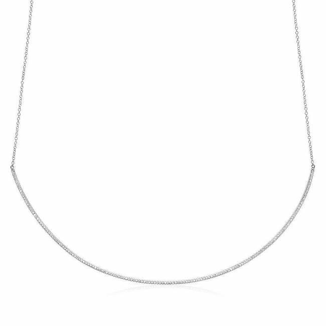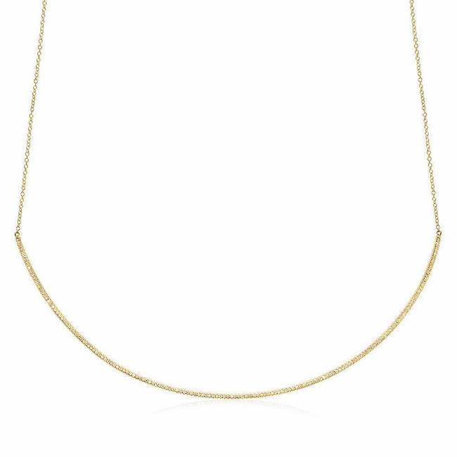 This head-turning diamond collar necklace is the perfect way to add something truly special to your next outfit. Combining luxe materials with a handcrafted touch, you’ll love letting this diamond curved bar necklace peek out from a button-down blouse or showing it off with a scoop neck dress. Bar necklaces have never been more popular, and our diamond curved bar necklace offers a stunning take on this trend.