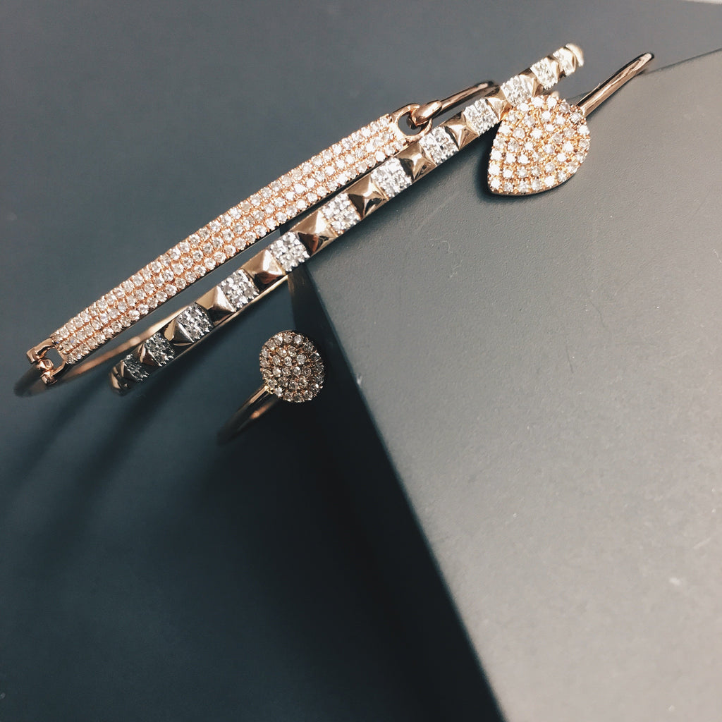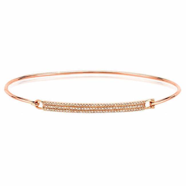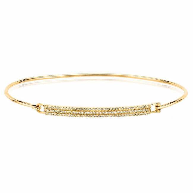 With three rows of pave set diamonds, our Diamond Pave Bar Bangle demands attention without saying a word. An exquisite example of everyday luxury, this gold and diamond bangle can be worn on its own or stacked on top of a few of your other faves to elevate any outfit into something special. Whether you’re looking for an eye-catching accent piece or seeking a bit of understated elegance, no jewelry box is complete without this diamond bar bangle bracelet.