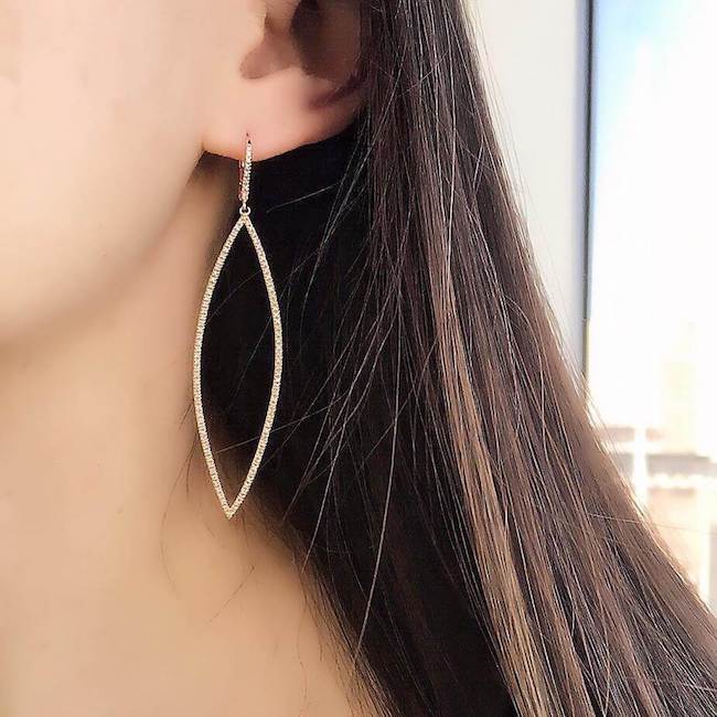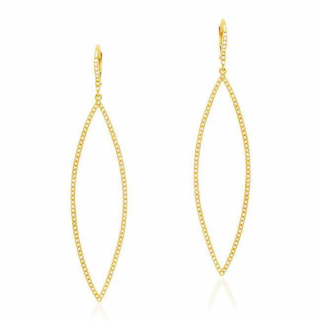 Set in 14k gold, these cool elongated marquise earrings feature 208 diamonds.