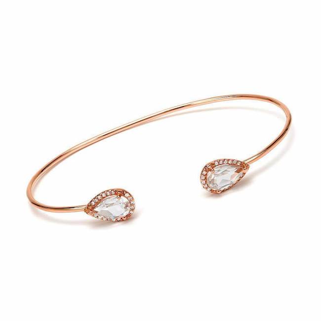 14K gold cuff with pear shape white topaz highlighted by 17 round diamonds on each side.