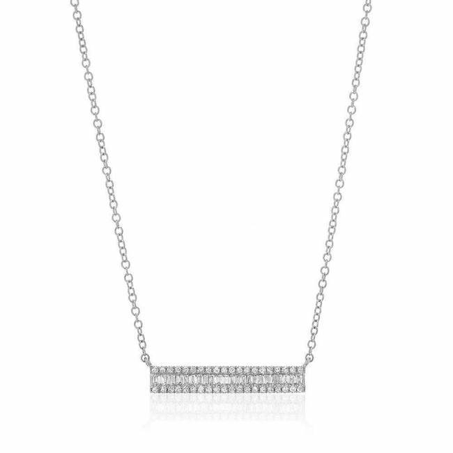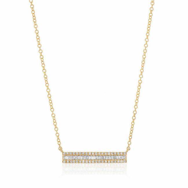 Part of our Heirloom Collection, this 16-18" adjustable 14k gold necklace features channel set baguette diamonds framed by two rows of diamonds.