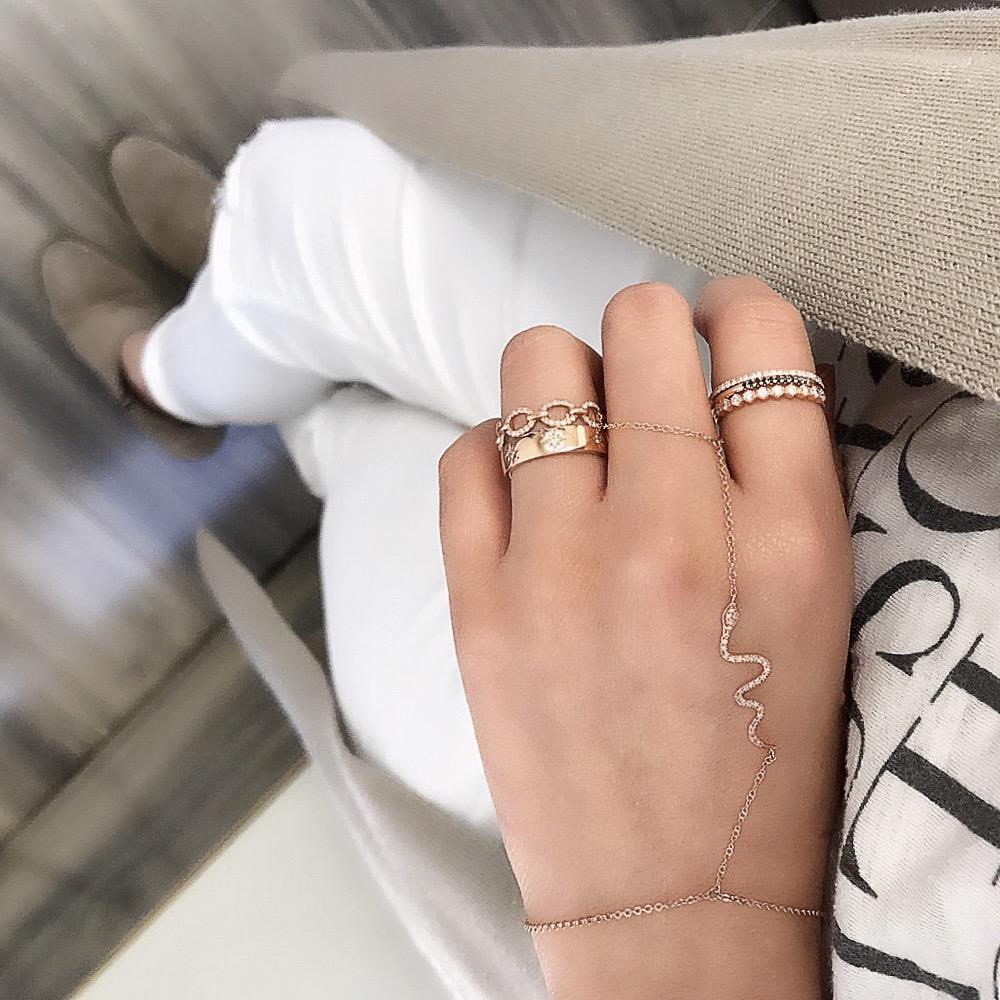 This beautiful band features diamonds set in hexagons. A cool, modern stacking option for alternative brides.