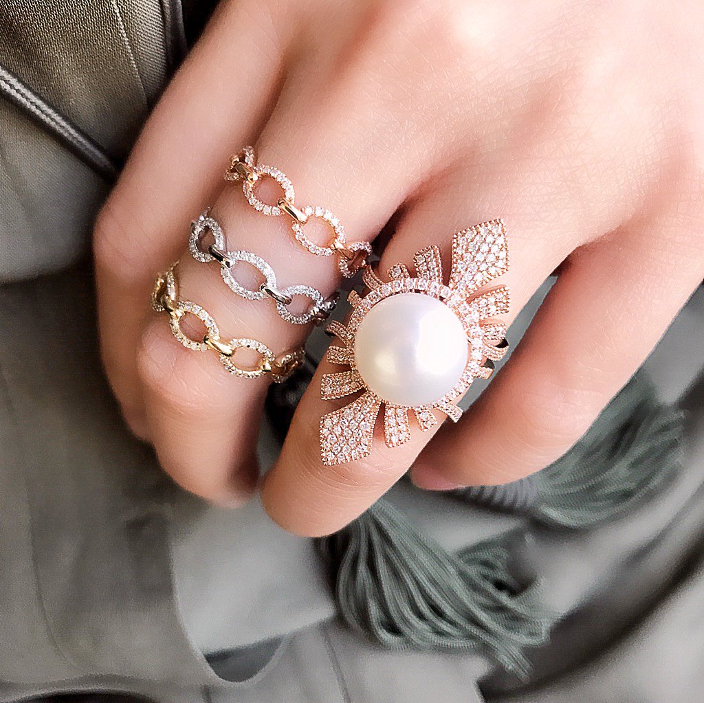 This dramatic band is amazing for framing statement colored stone or diamond rings, for a "WOW" effect.