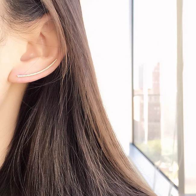 These 14K gold ear climbers feature 64 prong set diamonds.