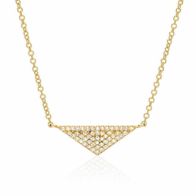 Classic with an edge, the triangle necklace is set in 14k gold, hangs from a 16-18" adjustable chain, and features 52 hand set diamonds.