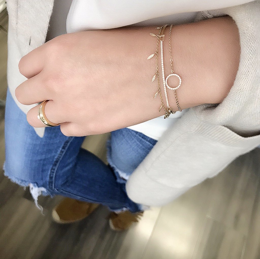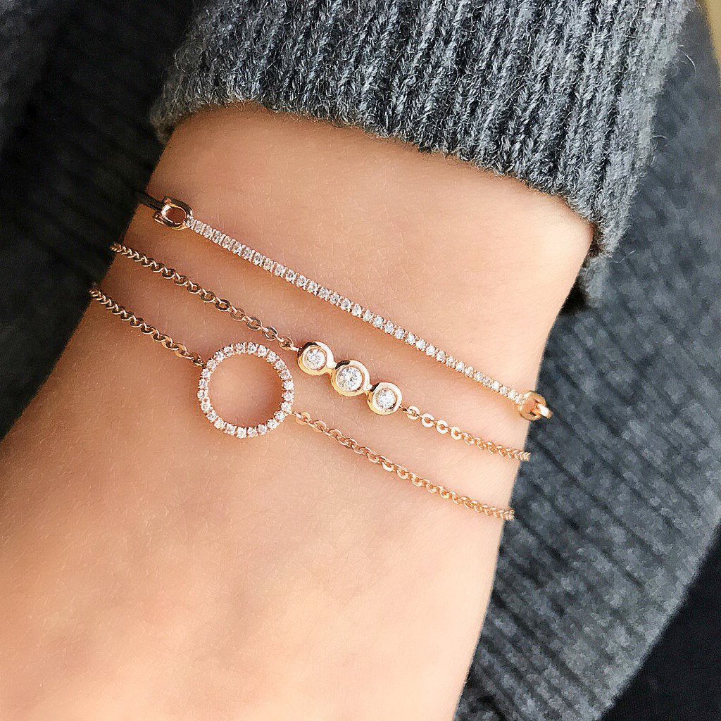 This simple bracelet features handset diamonds set in 14k gold on an adjustable 6.0-6.5-7.0" chain bracelet.