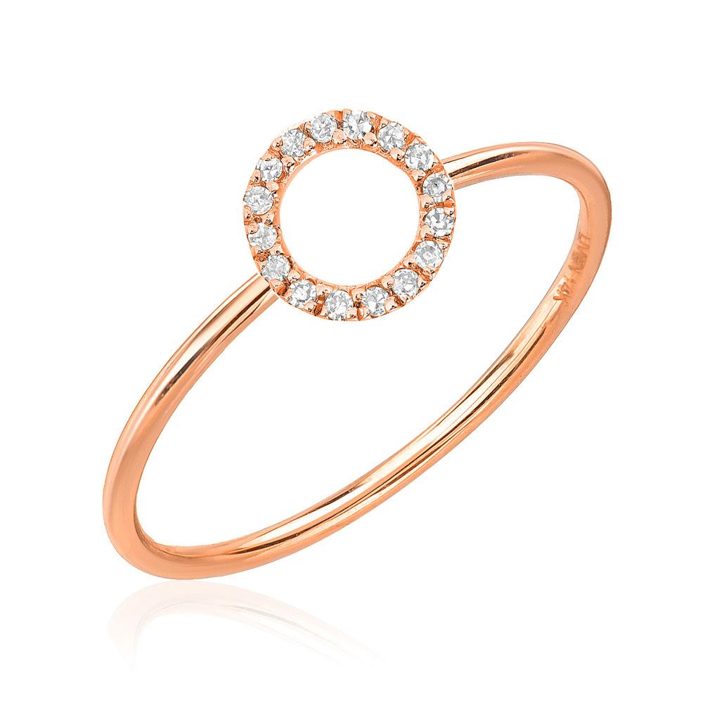 This adorable ring features an open circle studded with diamonds set on a comfort band. Ideal for stacking.