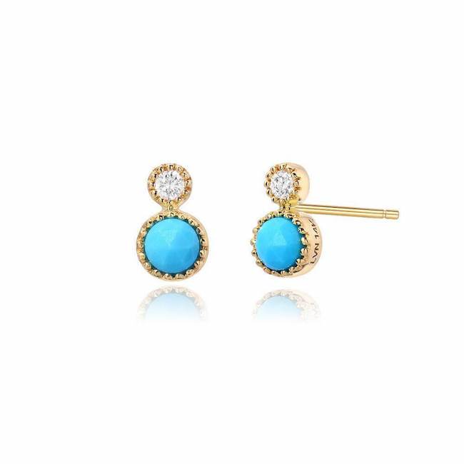 Orbit Petite Turquoise and Diamond Bezel Set Posts