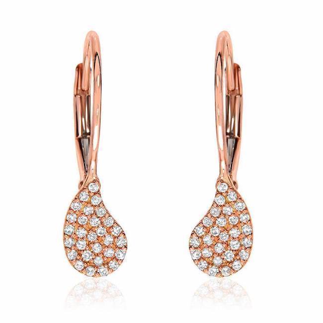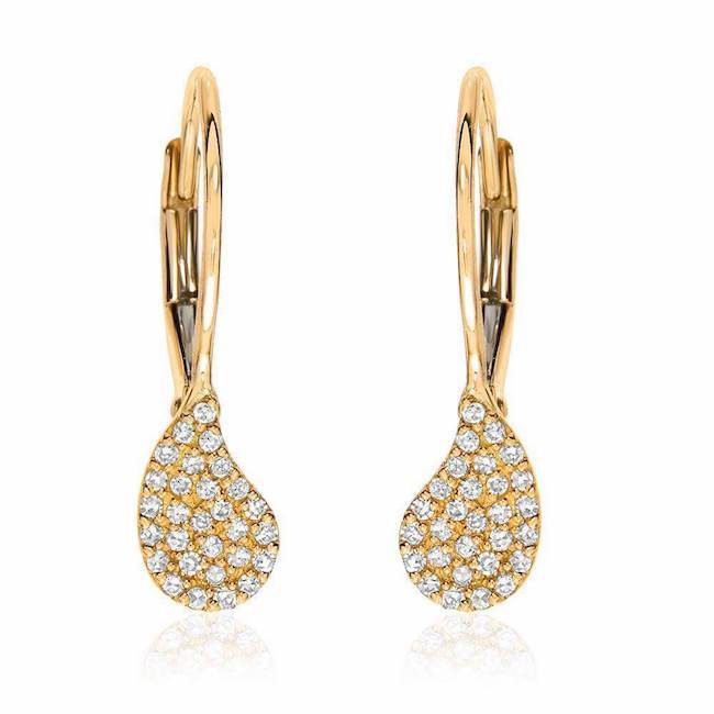 Adorable paisley drop earrings in 14k gold with diamonds.