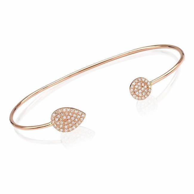 Simply gorgeous! Set in 14k gold, this diamond pear and round pave cuff adds the perfect pop of sparkle to any wrist.