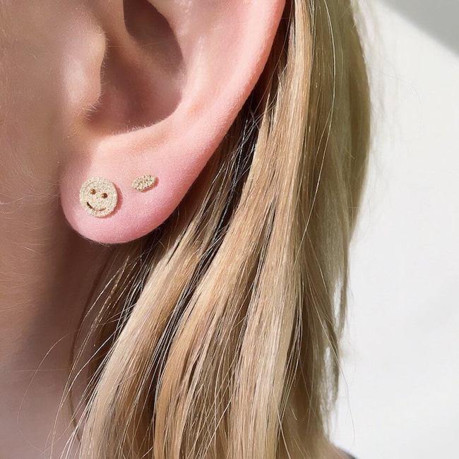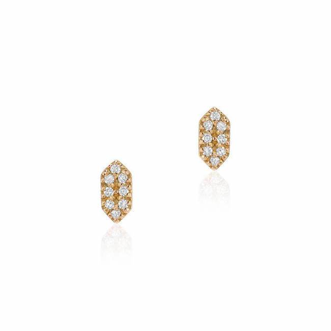 These petite 14k gold earrings are the perfect everyday posts, with a hint of sparkle from handset diamonds. The petite size makes them ideal second hole earrings.