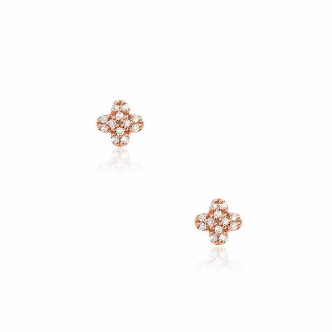 Adorable little 14k gold four leaf clover studs to bring you luck with a little sparkle.