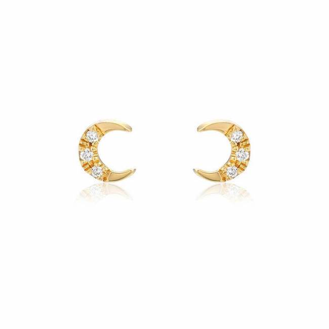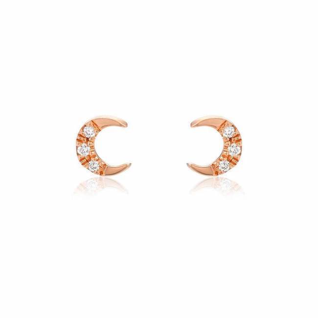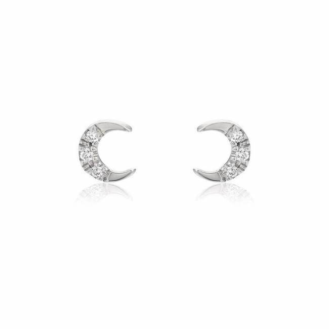 Petite Crescent Moon Pave Post Earrings
