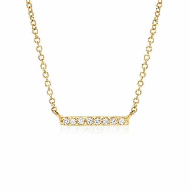 This cute necklace features a petite diamond bar hanging on a 16-18" adjustable chain. Ideal for layering.