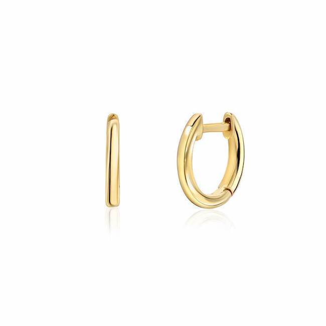 A staple in every girl’s jewelry wardrobe, these petite huggies in 14k gold are perfect for everyday wear.