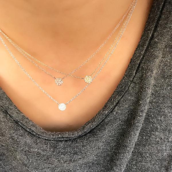 Petite Pave Disc Necklace - 4.5mm Diameter