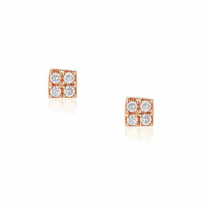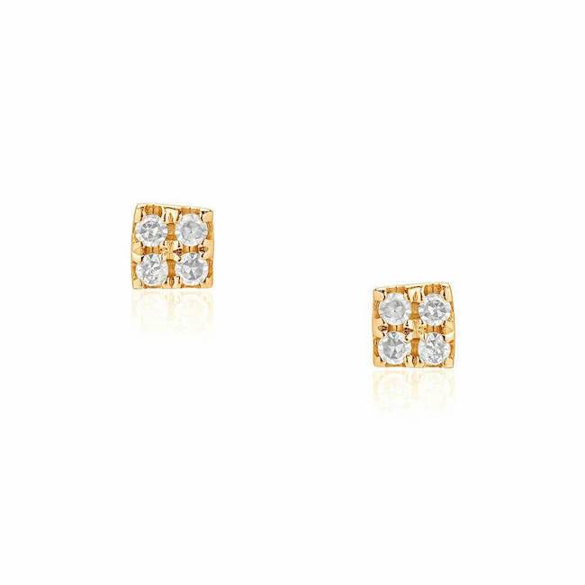 These cute square post earrings feature a total of 8 hand set diamonds.