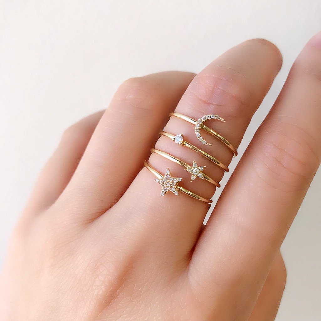 This adorable ring features a tiny diamond studded star set on a comfort band. Ideal for stacking.