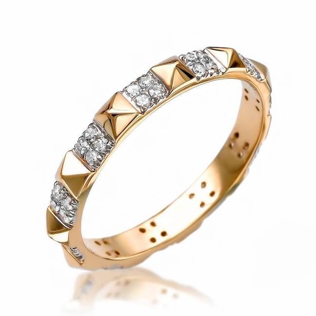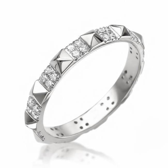 This edgy pyramid eternity band in 14k gold features an alternating pyramid and diamond station pattern. A super fierce addition to any stackable collection.