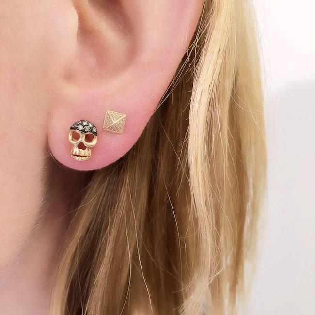 These edgy stud earrings are a great way to add some attitude to your look. Set in 14k gold with rhodium accents and champagne diamonds, they are sure to turn heads!