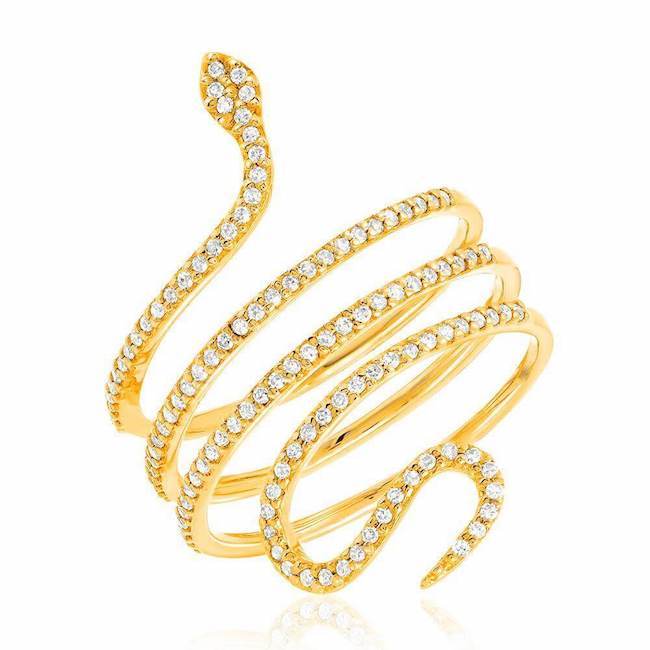 14k gold and diamonds make this eyecatching snake ring extra special.