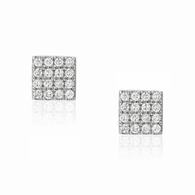 These cute square post earrings feature a total of 32 hand set diamonds.