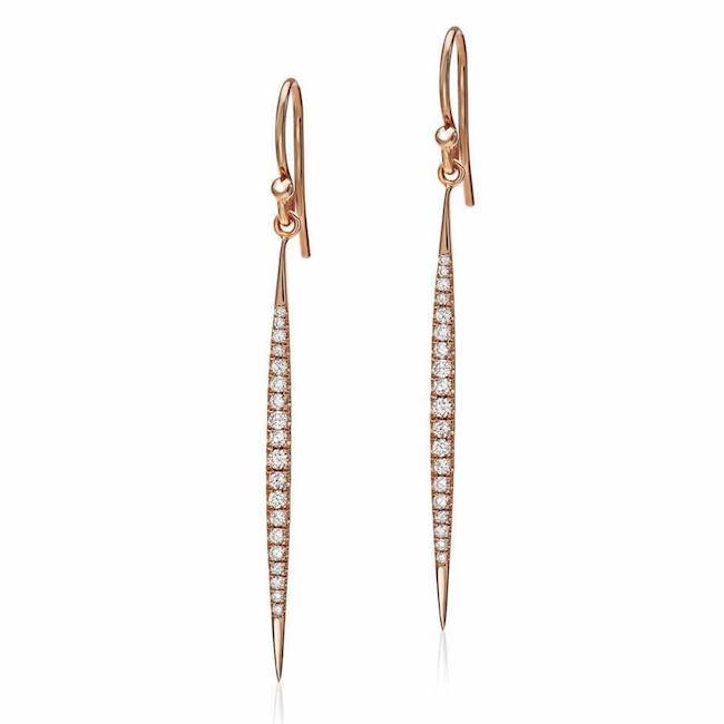 One of our signature earrings, the stiletto drops feature 38 graduating brilliant diamonds perfectly set and finished with sleek tips on a hand-made wire.