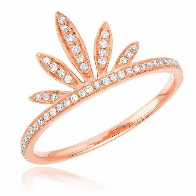 The sunrise ring is set in 14k gold, and features 54 hand set diamonds.