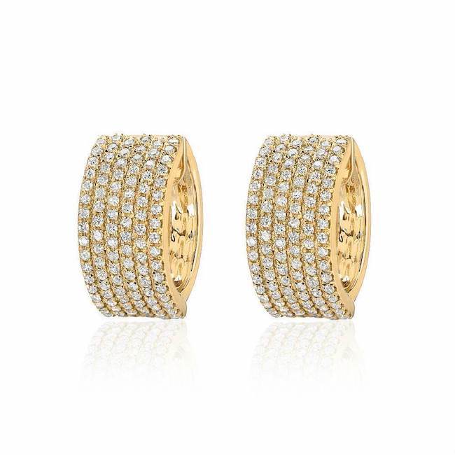 Our Wide Diamond Huggie earrings capture the essence of everyday luxury. These 14k gold huggie earrings are studded with a total of 204 hand set diamonds, elegantly tied together into a small, on-the-ear hoop design. These versatile huggies can seamlessly take you from your desk in the corner office to drinks down the street without skipping a beat. Make a statement when you pick up your pair of Liven diamond huggie earrings today.