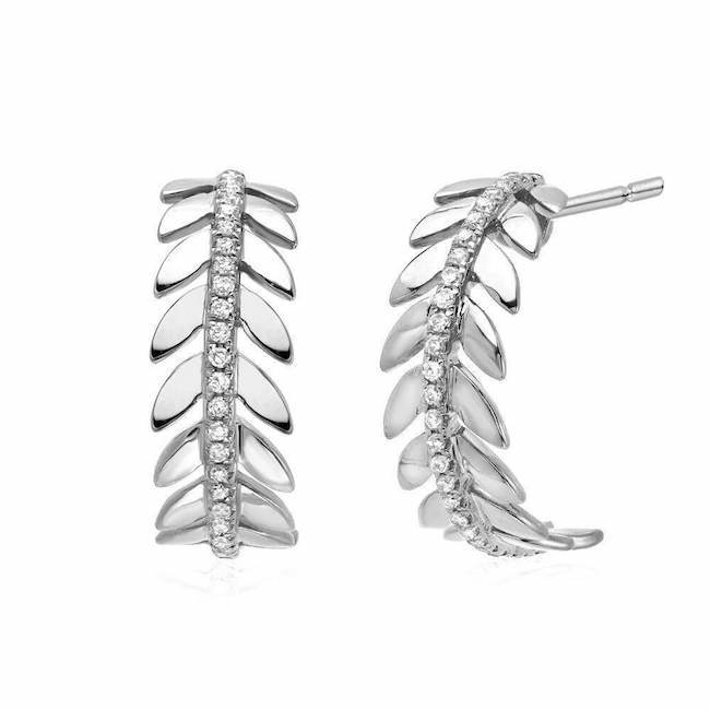 An ode to nature, these wreath hoop earrings are set in 14k gold and feature hand set diamonds in a line.