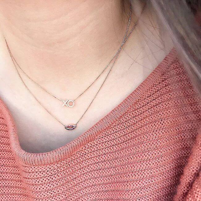 Hugs and kisses! This cute necklace is so fun. Wear it with the matching stud earrings.
